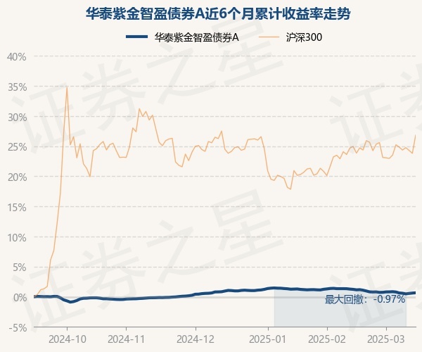 本站消息,3月14日,华泰紫金智盈债券A最新单位净值为1.1395元,累计净值为1.3367元,较前一交易日上涨0.04%。历史数据显示该基金近1个月下跌0.61%,近3个月下跌0.29%,近6个月上涨0.65%,近1年上涨2.6%。该基金近6个月的累计收益率走势如下图: